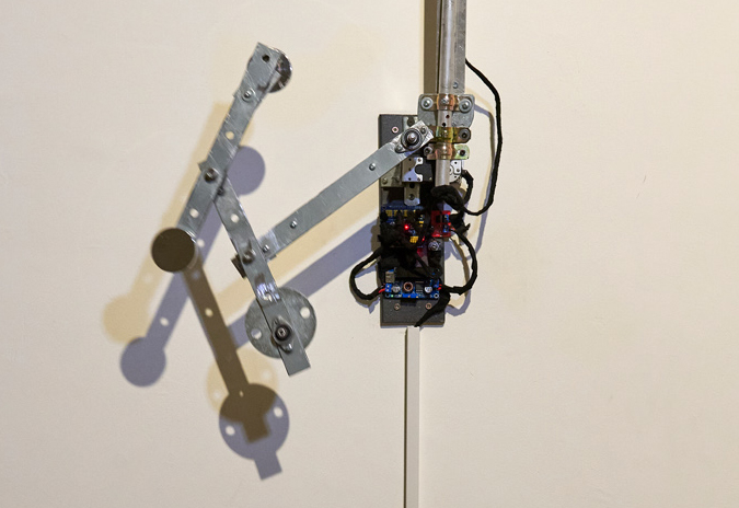 A kinetic installation consisting of a metal triple pendulum, a motorized arm, and an electromagnet. The triple pendulum is a deterministic system operating according to fixed physical laws, yet it is practically unpredictable due to its extreme sensitivity to initial conditions (the "butterfly effect"). The piece demonstrates a cyclic cycle of existence: the resting state represents "death" or thermodynamic equilibrium, while the motorized arm and electromagnet act as "external agents" injecting vital energy and information back into the system, thereby forcing it back into a state of instability and drama.