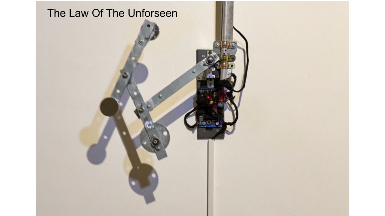 The work challenges the classical mechanistic view (such as "Laplace's Demon"), which posits that perfect knowledge of the laws of nature allows for perfect prediction of the future; it presents the unexpected as an essential and inevitable part of reality. Inspired by physicist Hans-Peter Dürr, who argued that "matter is not made of matter" but of relations and potentiality, the electromagnet appears as an "invisible force"—an expression of consciousness or non-material information that breathes life into the dormant mechanics. The chaotic motion of the pendulum becomes a metaphor for natural complexity: a system "on the edge of chaos," where infinite movement richness, reminiscent of the flow of life itself, arises from simple laws.